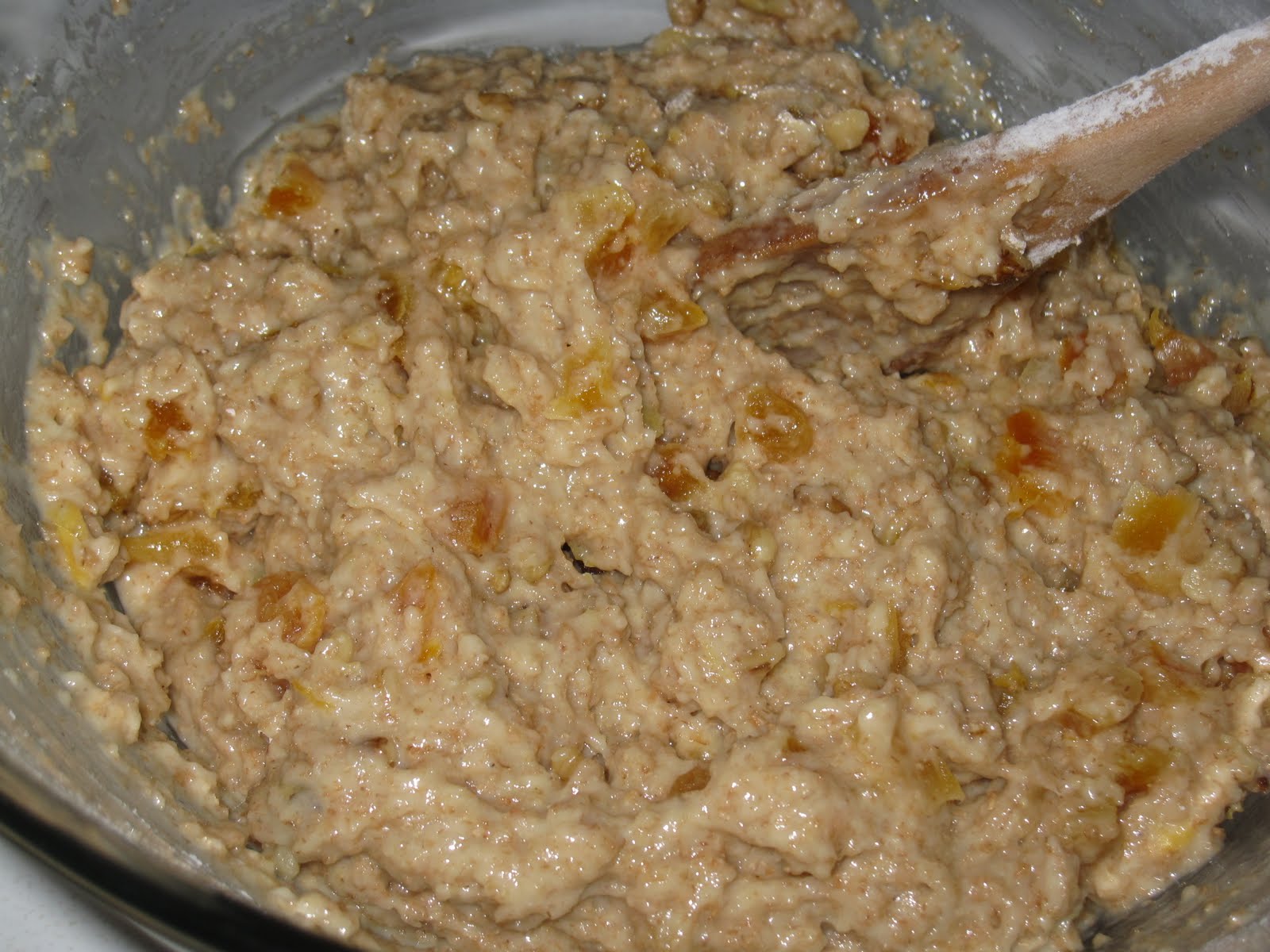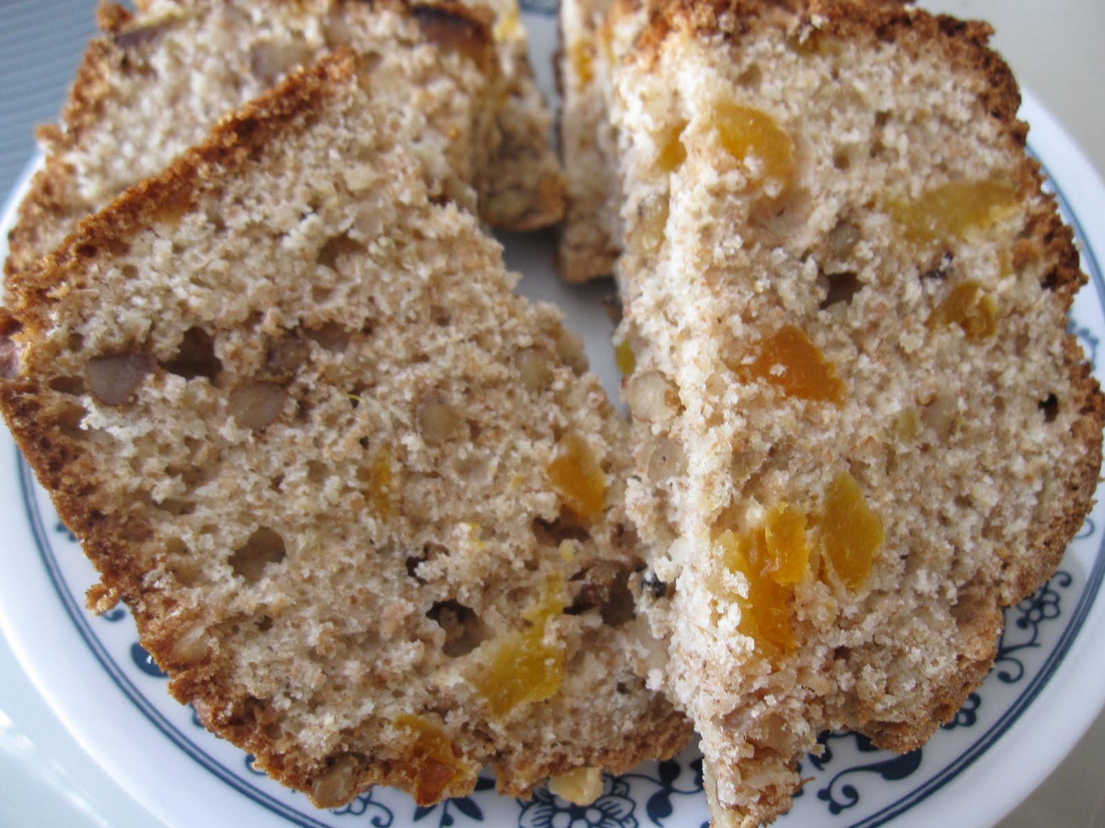 - Combine flour, baking powder, baking soda and salt in a separate bowl and combine wet and dry ingredients until thoroughly mixed. Stir in walnuts and chopped apricots.