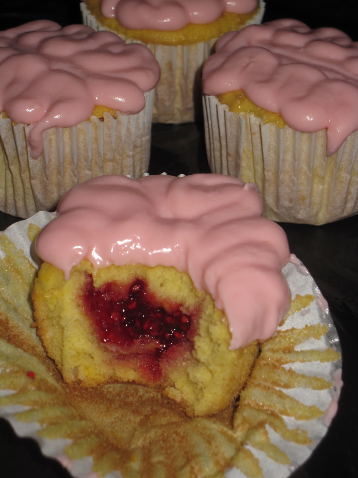 I had a couple of outside influences when it came to making these brain cupcakes. One is that it is now thisclose to Halloween, although if you were to go the holiday sections of any store, Halloween began back in September. Another is that it’s Trevor’s favourite unofficial holiday. We always make a list of movies to watch leading up to the 31st, which always includes the Halloween series, Nightmare on Elm Street series and the Scream movies. Those are the ones I’ll sit through. On his own, I’m sure he watches many more. These cupcakes were to get us in the Halloween spirit.