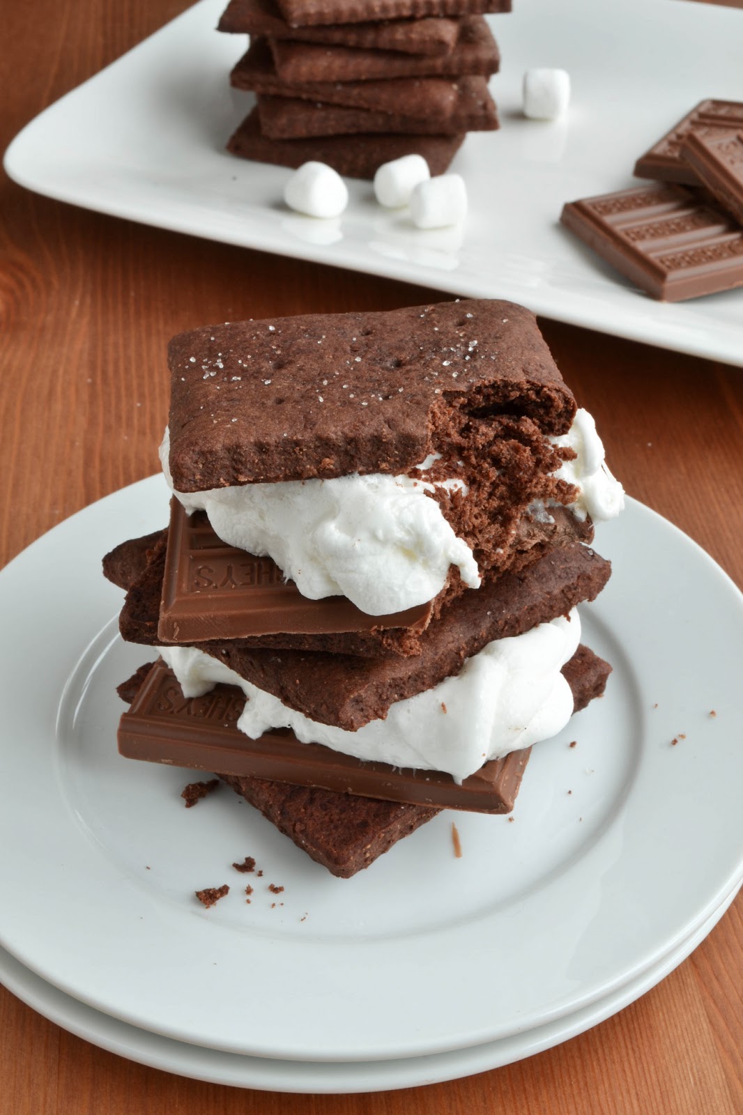 Although we live in the city now and we do not own a fire-pit, this didn’t stop me from making my own s’mores and this started with making my own graham cookies. To encompass my “grown-up” tastes (ha!) I substituted some of the flour for cocoa powder and added a touch of espresso powder to really bring out the chocolate-y goodness I bet you thought I was kidding when I said I wanted to stay home and eat chocolate. When I want chocolate, I really want chocolate and these really fit the bill on my craving.