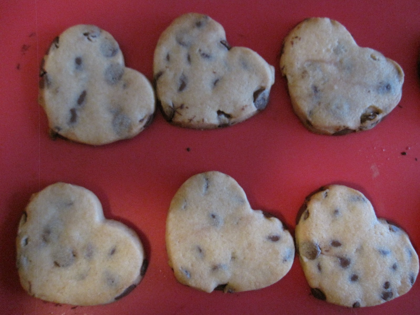 So here are the cookies before they went into the oven. You can bet I was crossing my fingers that they would keep their heart shapes.